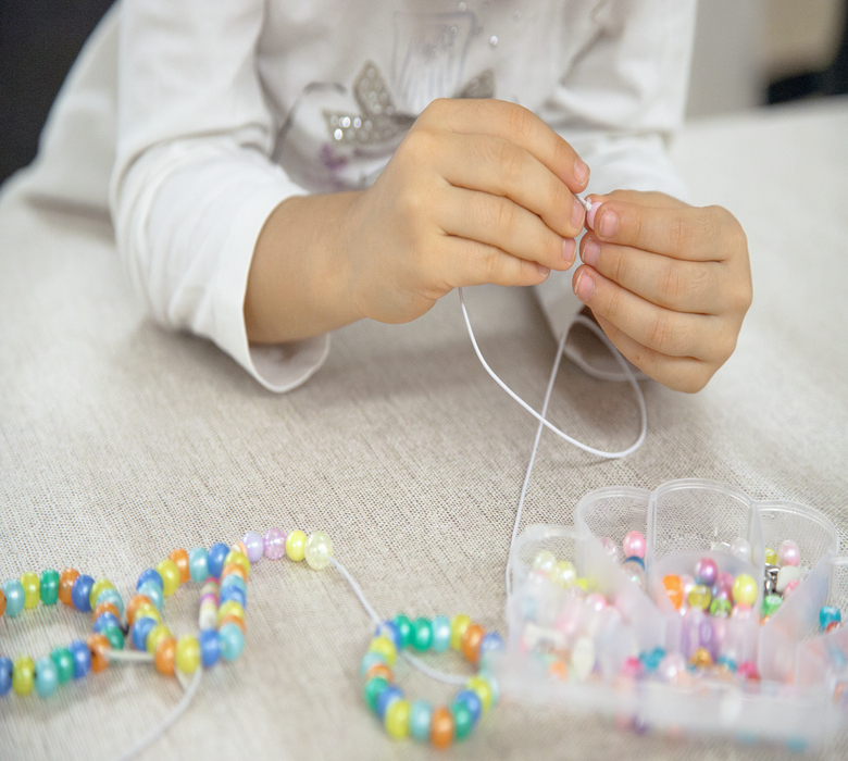 비즈를 줄에 끼우며 집중력을 키우고 나만의 팔찌 조합으로 창의력도 기를 수 있는 바다를 담은 팔찌를 만들어보세요.