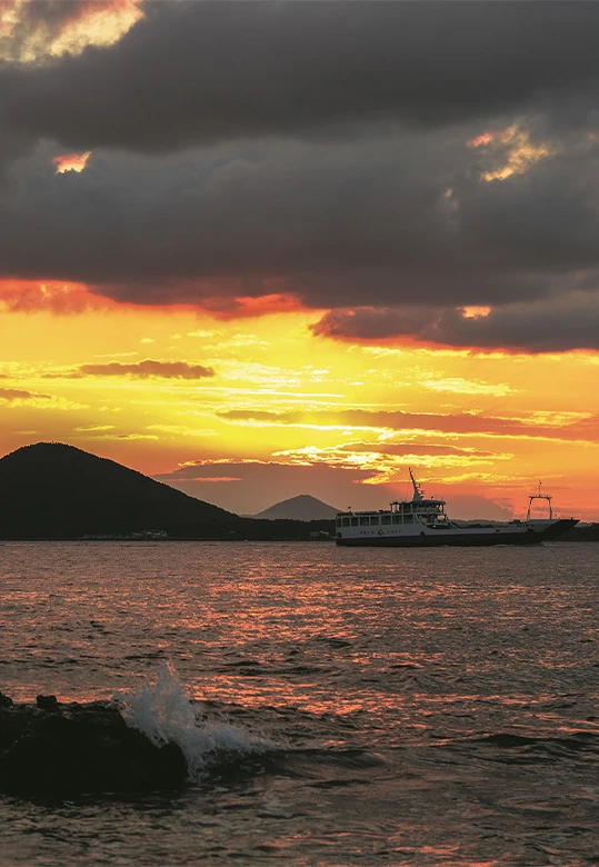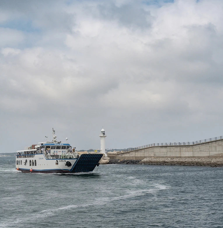 2) 성산항 - 우도 하우목동항: 매시간 정시 출발 (15분 소요/ 왕복1만500원)
