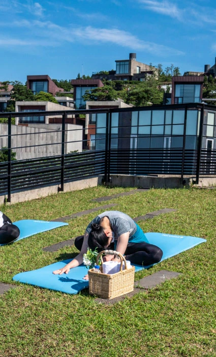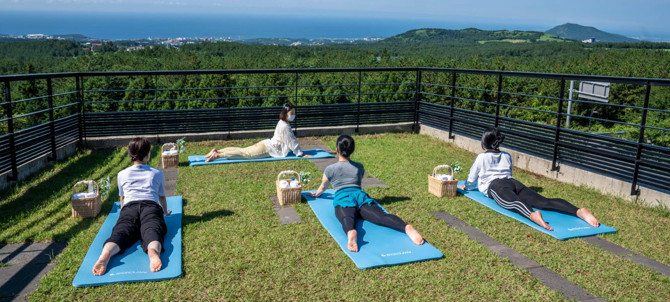 토, 일요일 오전 8시에 진행되는 제주 아트빌라스 요가 클래스를 신청했다. 요가를 한 번도 해보지 않은 사람도 참여할 수 있다고 하여 용기 냈다. 여행 가서 늦잠 자며 스트레스를 푸는 게 낙이지만, 하루쯤은 일찍 일어나 가볍게 몸을 풀고, 개운한 아침을 맞고 싶었다. 사실, 모닝커피와 조식을 먹은 뒤, 한 열 시쯤 요가 클래스가 있으면 좋겠다고 생각했는데, 요가는 이른 아침이나 차라리 저녁에 하는 게 낫다고 한다.