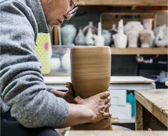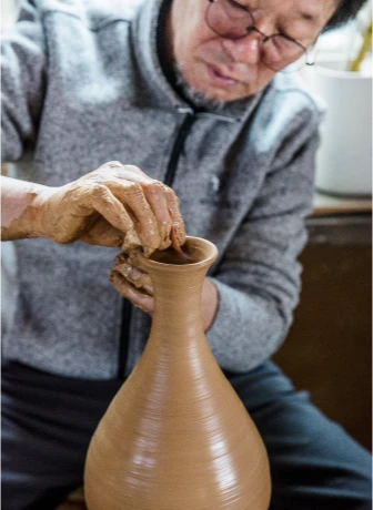 관사명을 새긴 분청사기도 여럿 출토돼 공납용 분청사기 생산지였다는 사실도 드러났고. 가마터에서 발굴된 유물을 재현하는 작업도 하고 있어요. 김해 지역 도공으로서 분청사기의 명맥을 잇는 데 앞장서야 한다는 사명감도 있죠.